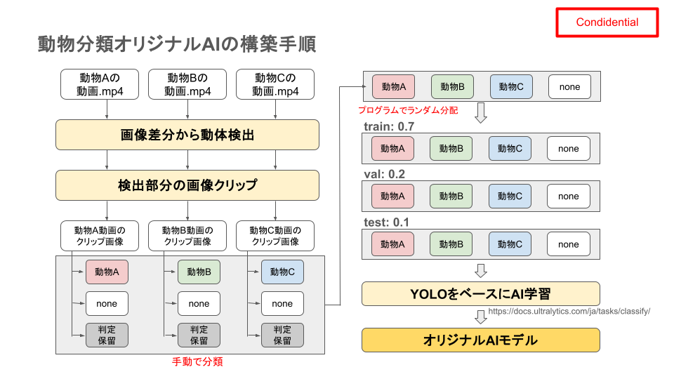 この動物はアライグマと思われますが、分類結果として最も可能性の高いものは「swab」(綿棒?)と分析され、このままでは使い物になりません。そこで以下のような方針でリアルタイム分析器の開発を試みました。