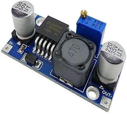 鉛蓄電池からラズパイなどへの給電やスマホの充電ができるようにしたいので、12V電源を5Vに降圧する回路を組みます。LM2596 DC-DC降圧コンバータ(amazonで6個659円)を用いて5Vに降圧し、ラズパイPicoWで入力と出力の電圧を取得してAmbientサーバーにデータを送る簡単なIoTシステムをブレッドボード上で試作してみます。LM2596は降圧ターゲットが可変で、青いプラスチックについているネジを回して電圧を調整します。ネジは反時計回りが降圧です。入力電源を繋ぐと赤いLEDが点灯しますが、降圧側(反時計回り)に回していくとLEDの灯りが弱くなっていくので降圧されているのが確認できます。テスターで5Vに調節します。