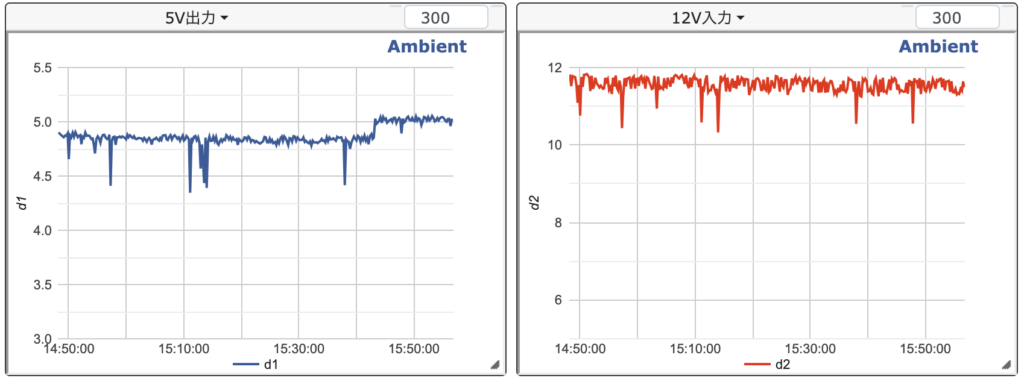 ということが言えると思います。電源の制御としては入力側を監視するべきで、目安としては10.5Vを切ったらラズパイ等消費電力の大きいデバイスへの電力供給を停止するなどの設計を組み込んでいきたいと思います。